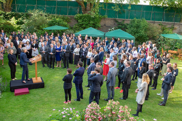 And in the evening, May hosted a reception for Soccer Aid in the Downing Street garden.